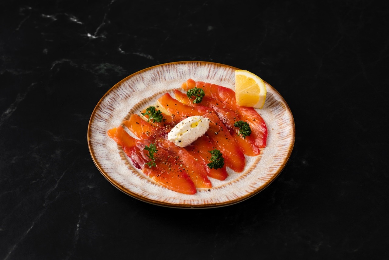 红菜头腌三文魚+鲜奶酪球、红菜头酱