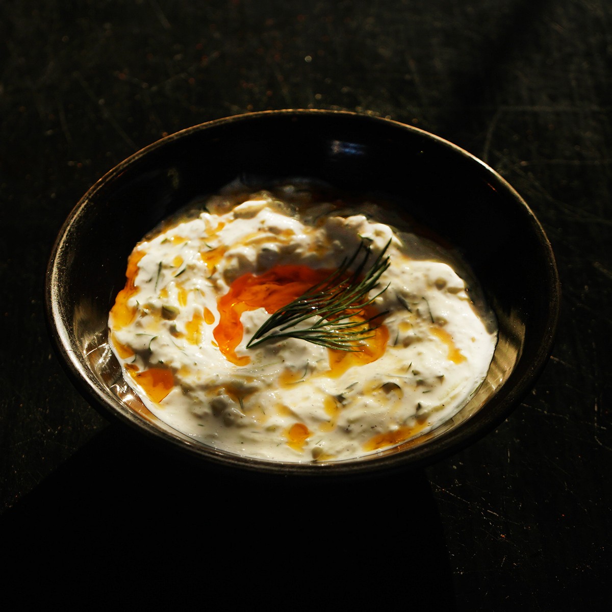 新鲜青瓜、莳萝、咸酸奶+辣椒油