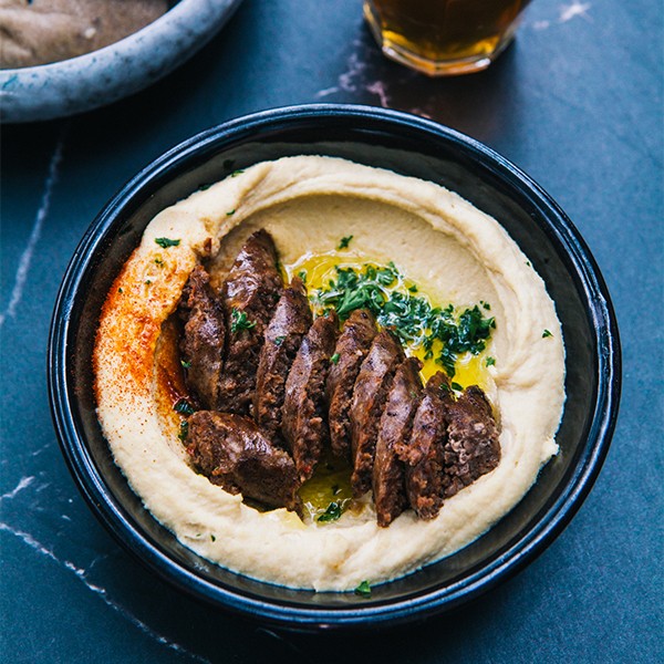 Hummus with roasted lamb